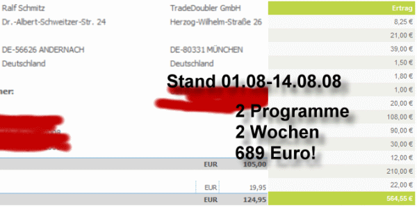 Aktueller Stand 14.08.08 für 2 Partnerprogramme von 8 mit denen ich arbeite
